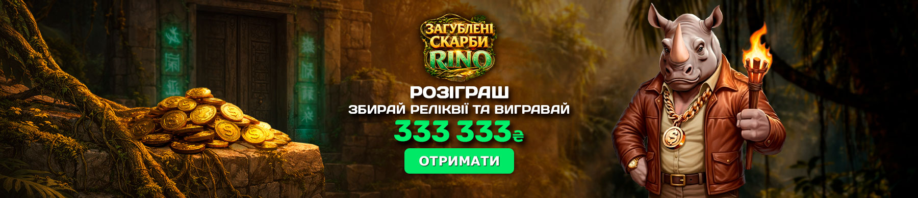 Ласкаво просимо до Rino Casino – місця, де кожен оберт барабанів наближає вас до неймовірних виграшів! Rino Casino пропонує незабутній досвід для справжніх шанувальників слотів в Україні та за її межами. Завдяки великому вибору слотів із захоплюючою графікою, щедрими бонусами та зручними способами поповнення рахунку, Ріно Казино швидко стало улюбленим серед гравців. Досліджуйте різноманітні категорії слотів, активуйте ексклюзивні бонуси та відкрийте для себе нові грані азарту. Грайте безпечно і зручно на RinoCasino – на комп’ютері чи з мобільного. Спробуйте удачу в Ріно Casino сьогодні й відчуйте смак справжньої азартної гри!